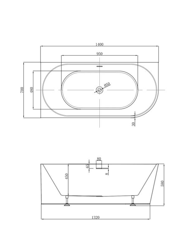 Ванна акриловая Abber AB9502-1.4 L 140x70 см, в комплекте слив-перелив и каркас, цвет белый.