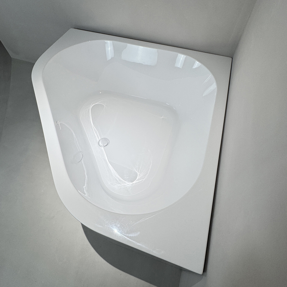 Ключевые преимущества- Угловая конструкция. Форма четверть круга позволяет рационально использовать пространство: ванна органично размещается в углу, освобождая центр помещения для другой сантехники или мебели