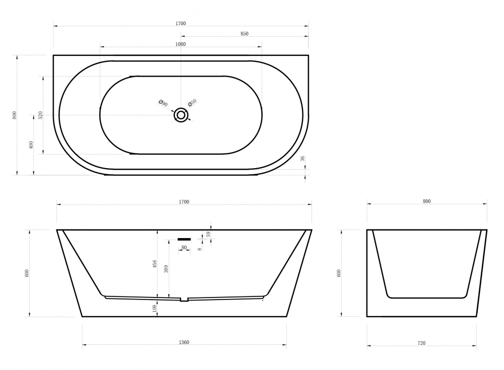 Описание ванна Abber AB9216-1.7MW