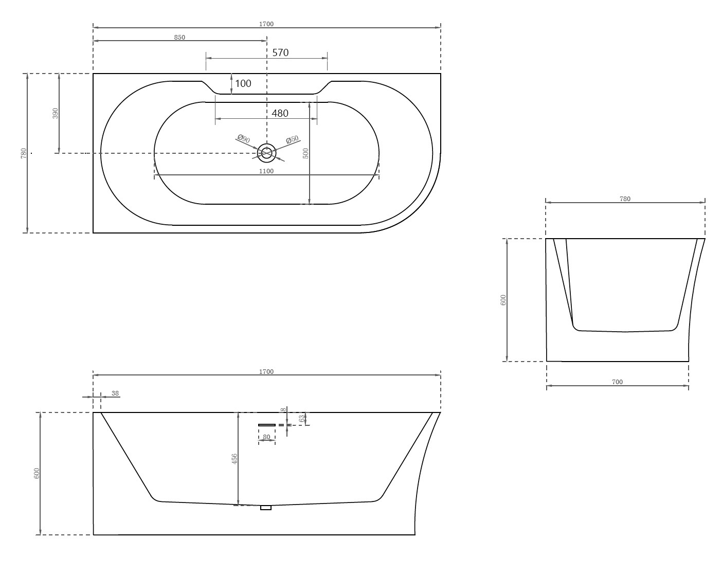Характеристики ванна Abber (AB9335-1.7 L)