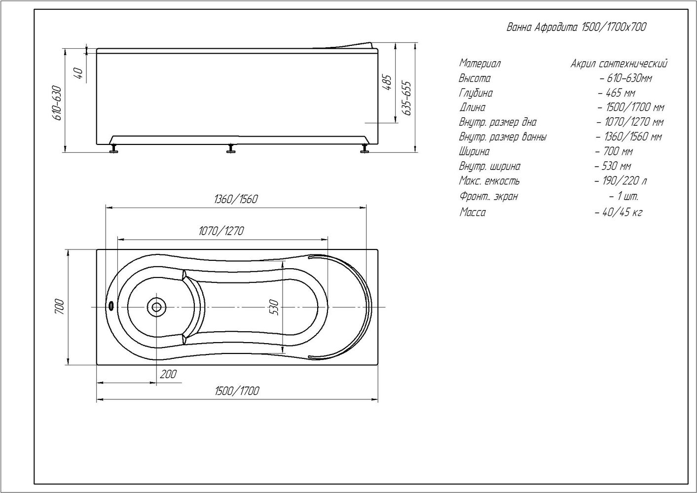 Ванна акриловая Aquatek Афродита, размер 1500x700 мм, цвет белый. Каркас, панель и сифон приобретается отдельно.