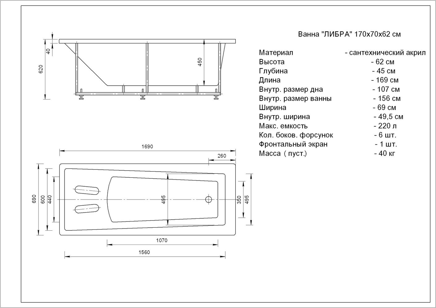 Ванна акриловая Aquatek Либра, размер 1690x690 мм, цвет белый. Каркас, панель и сифон приобретается отдельно.