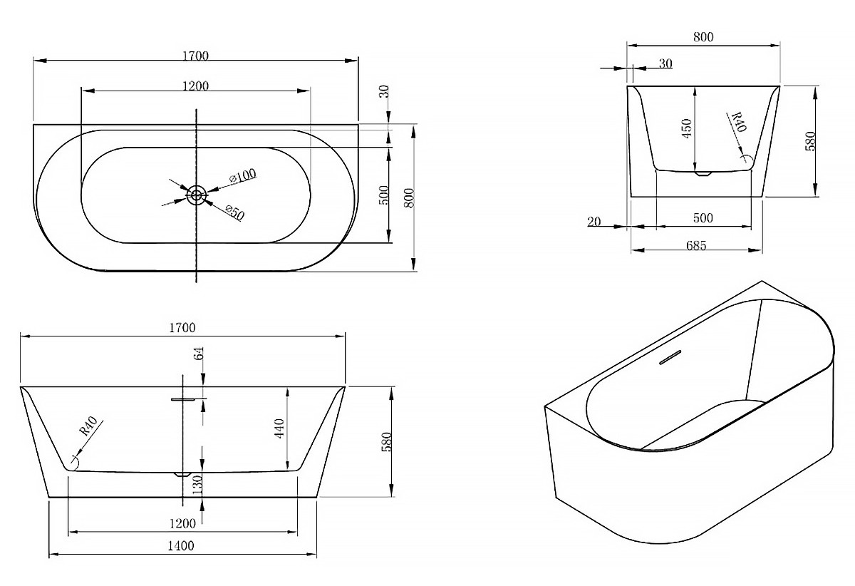Характеристики ванна Azario (AZ-7005-17W)