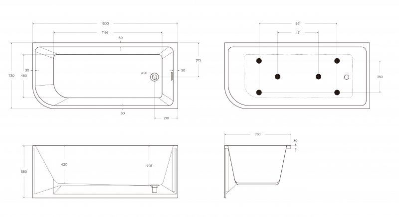 Характеристики ванна BelBagno (BB712-1600-730-R)
