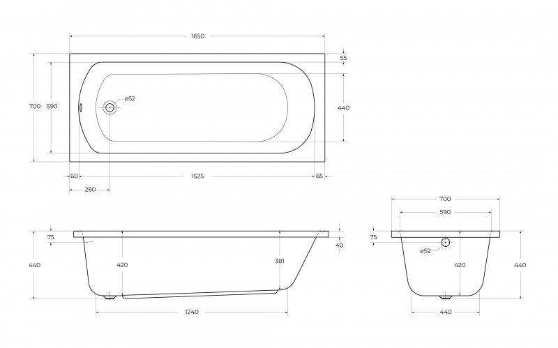 Характеристики ванна Cezares (ECO-165-70-41-W37)