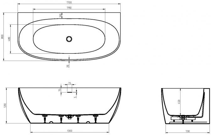 Описание ванна Cezares CZR-STYLUS-WALL-170-80-59