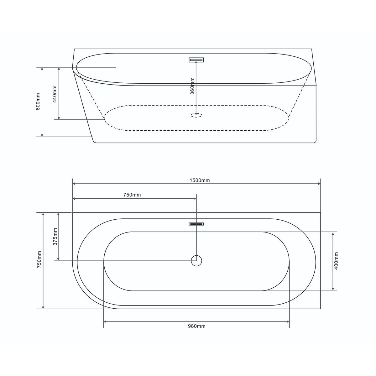 Ванна акриловая Grossman Cristal GR-2205FR, размеры 1500x750x600 мм, правосторонняя, сифон в комплекте, цвет белый.