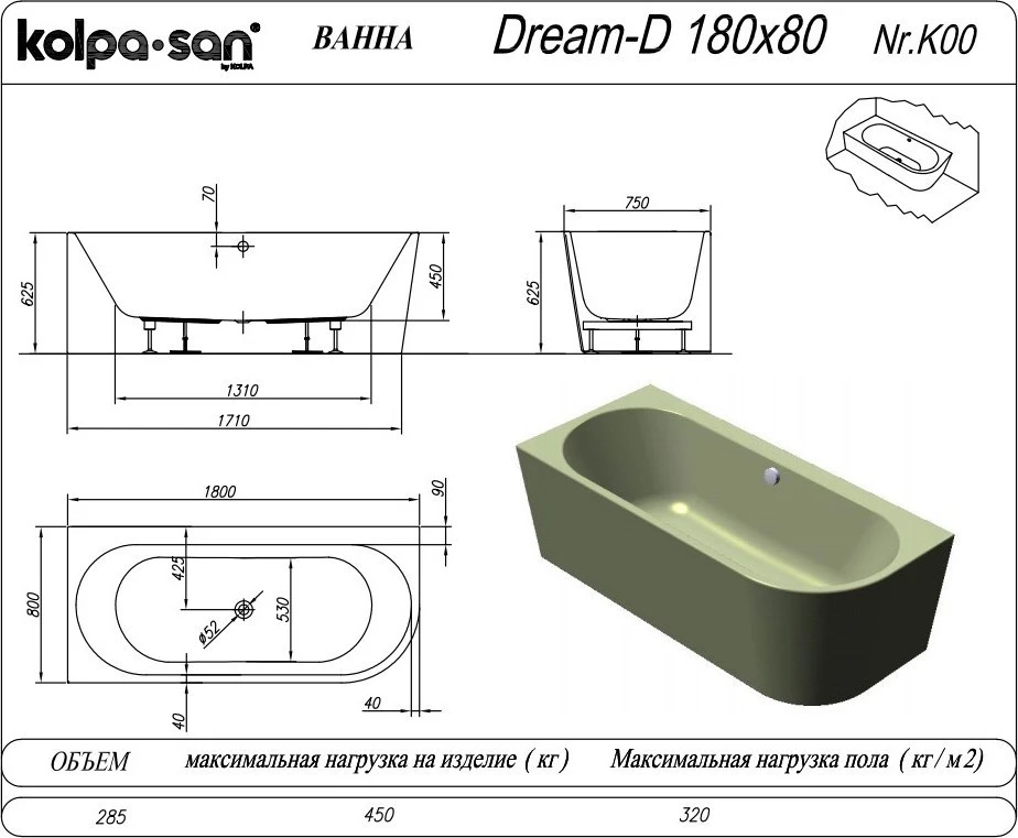 Характеристики ванна Kolpa-San (Dream SP_1)