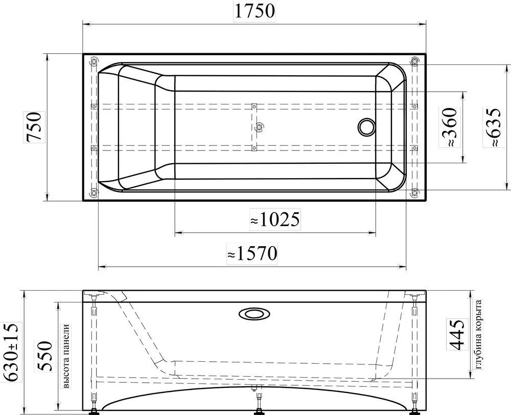 Ванна акриловая Радомир Агата 175x75 см, с каркасом, цвет белый. Сифон и панели приобретаются отдельно.