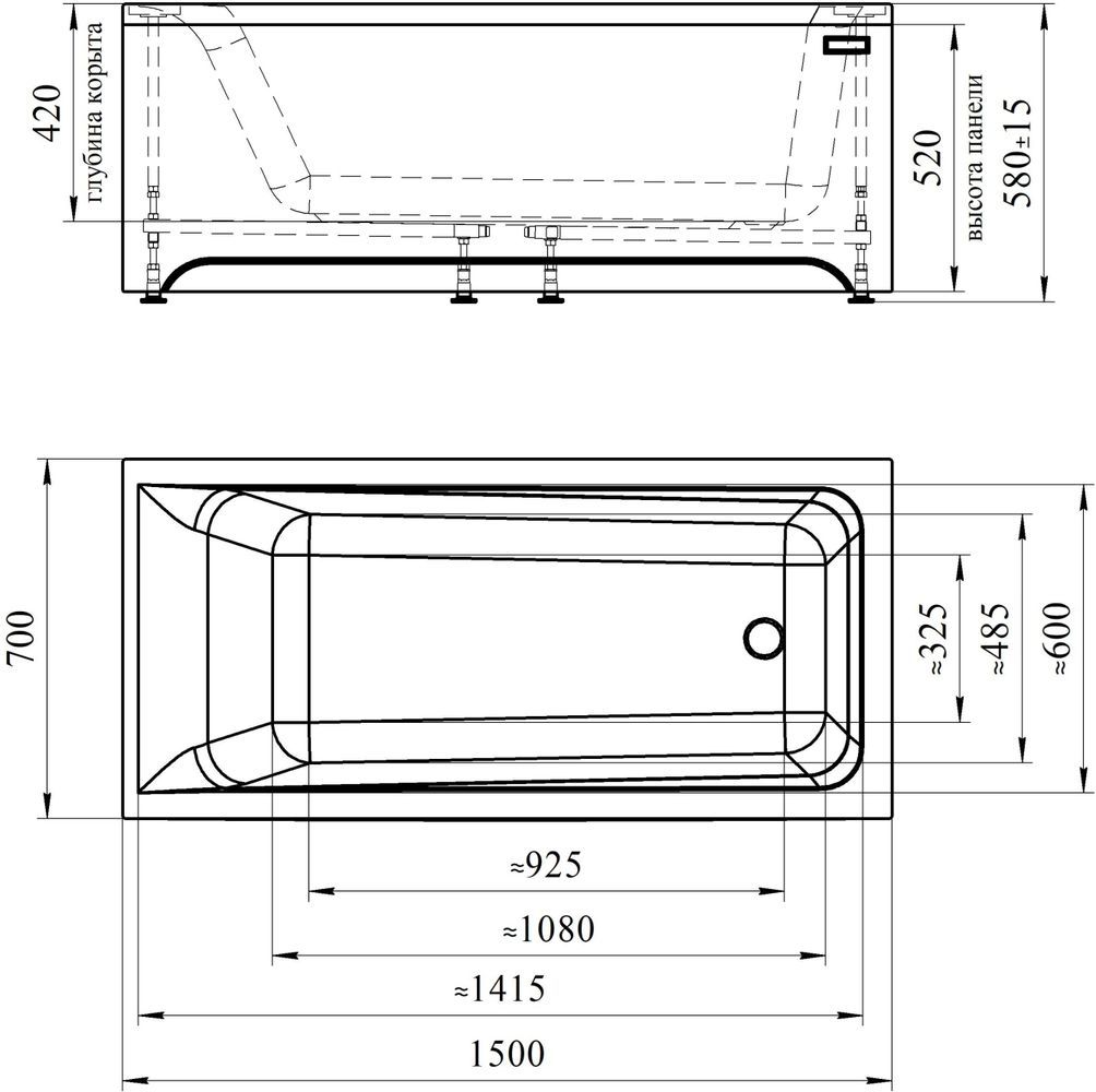 Характеристики ванна STARK (Старк 150x70 см)