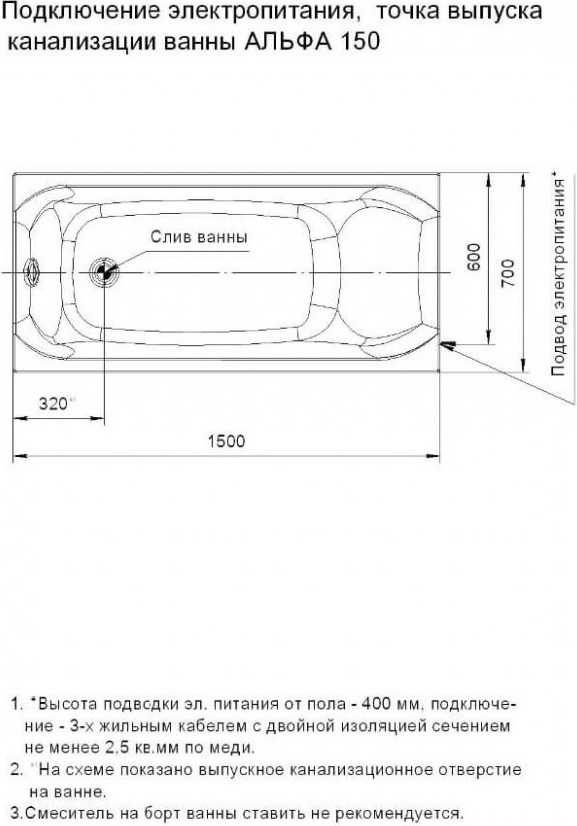 - отверстия под смеситель (при покупке ванна+смеситель отверстия отдельно заказывать не надо)