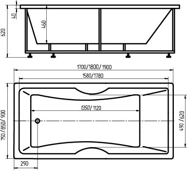 - Внутр. размер ванны 178 см