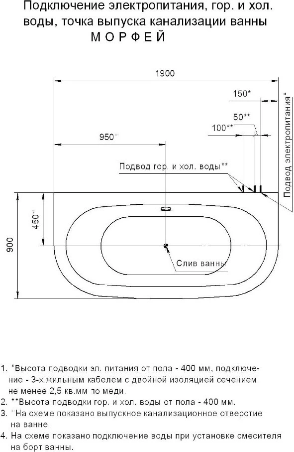 - отверстия под смеситель (при покупке ванна+смеситель отверстия отдельно заказывать не надо)