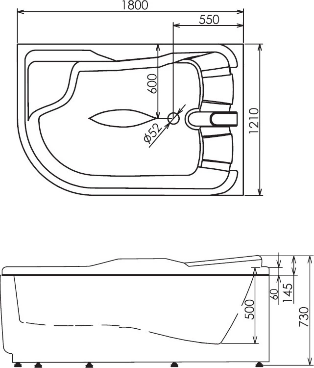 Ванна гидромассажная Gemy G9083 B 180x121 см R