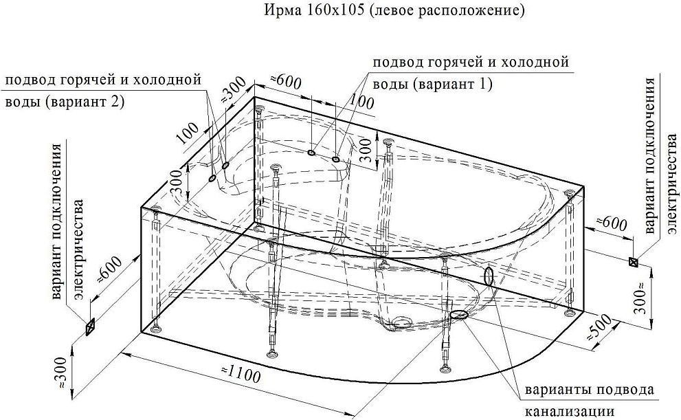 Ванна «Ирма» 160х105 формой и функционалом повторяет модель «Ирма» 169х110, отличается лишь более компактными размерами, что позволяет установить ванну даже в малогабаритном помещении.