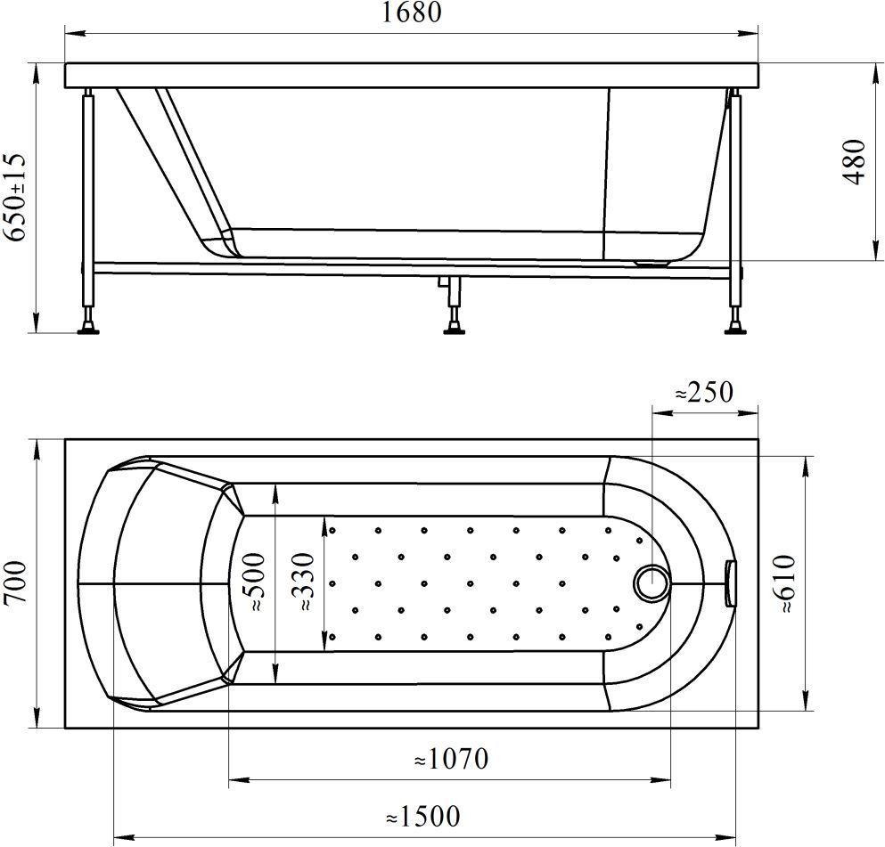 Ванна гидромассажная Радомир Николь 168x70 см (Гидромассаж "Баланс")