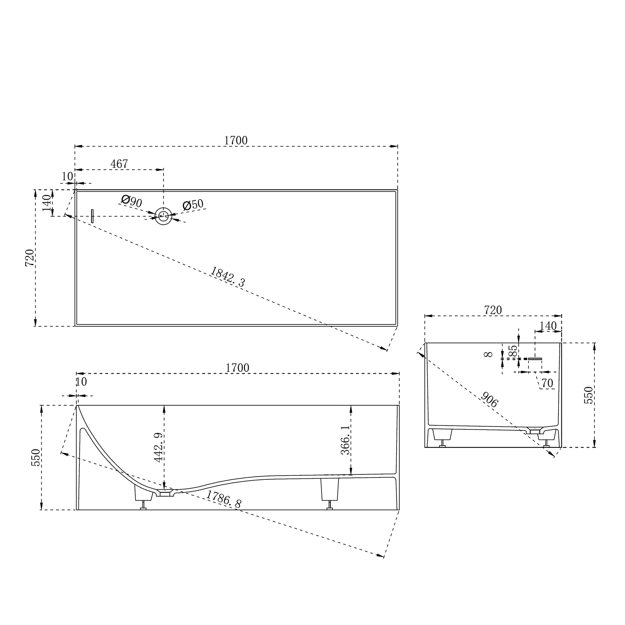 Ванна каменная Abber Stein 170x72 см AS9640-1.7, белый матовый