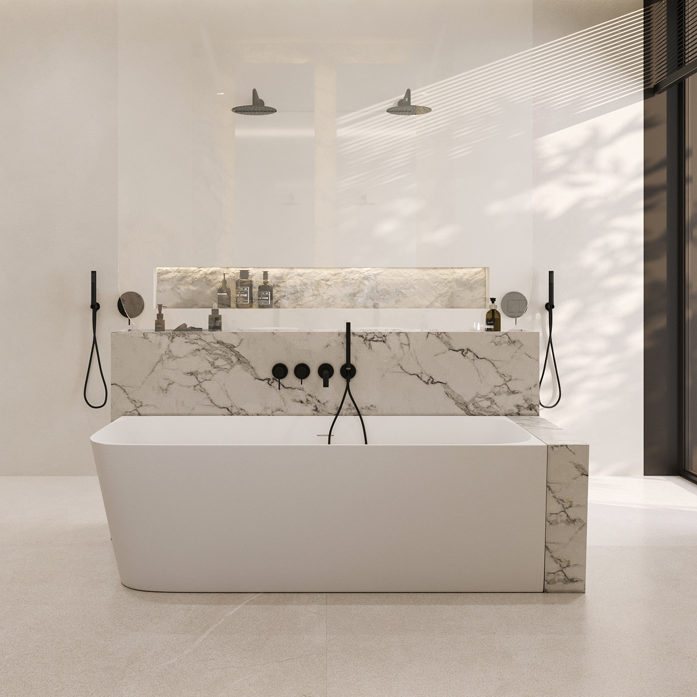 Ванна каменная Abber Stein 170x75 см AS9621-1.7 R, слив-перелив в комплекте, цвет - белый матовый.