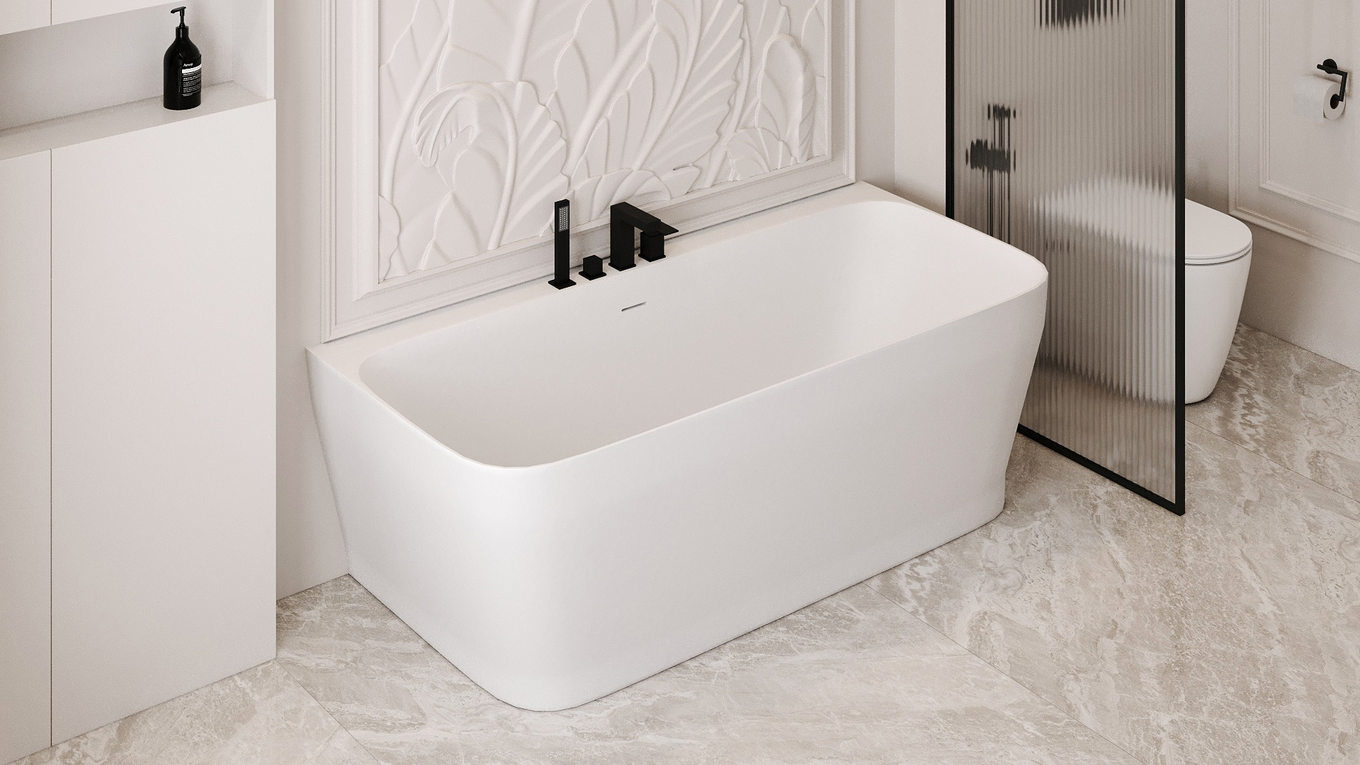 Ванна каменная Abber Stein 170x80 см AS9616, белый матовый