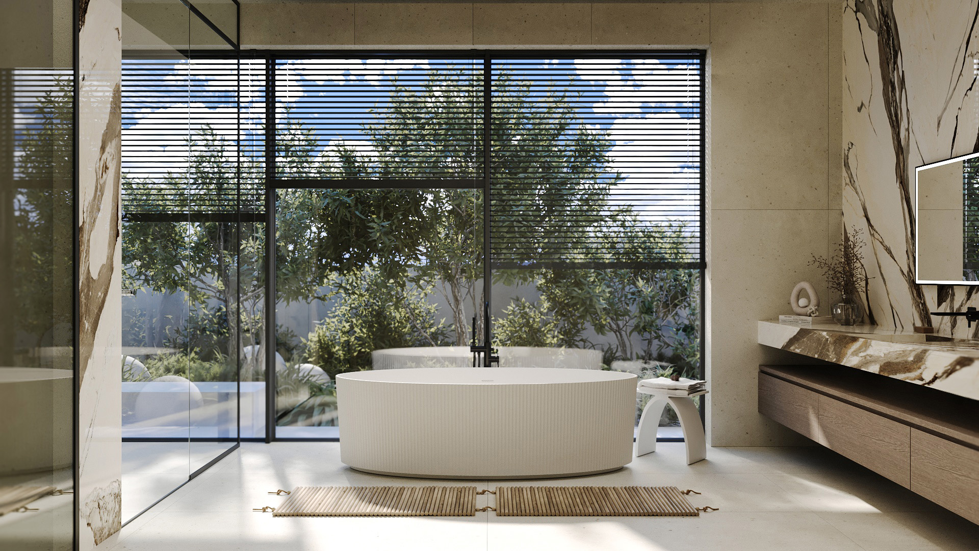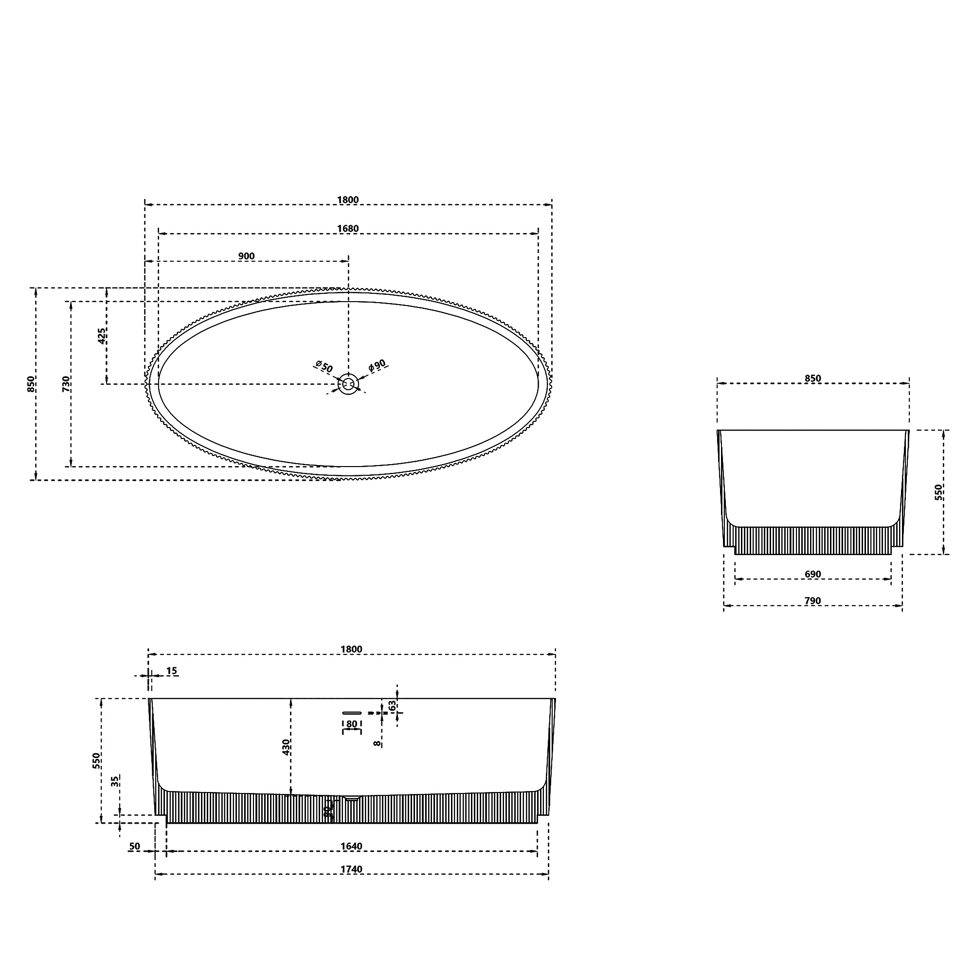 Ванна каменная Abber Stein, размер 180x85 см, слив-перелив в комплекте, цвет белый матовый.