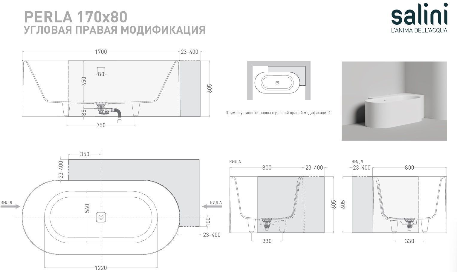 Описание ванна Salini 1049201MN