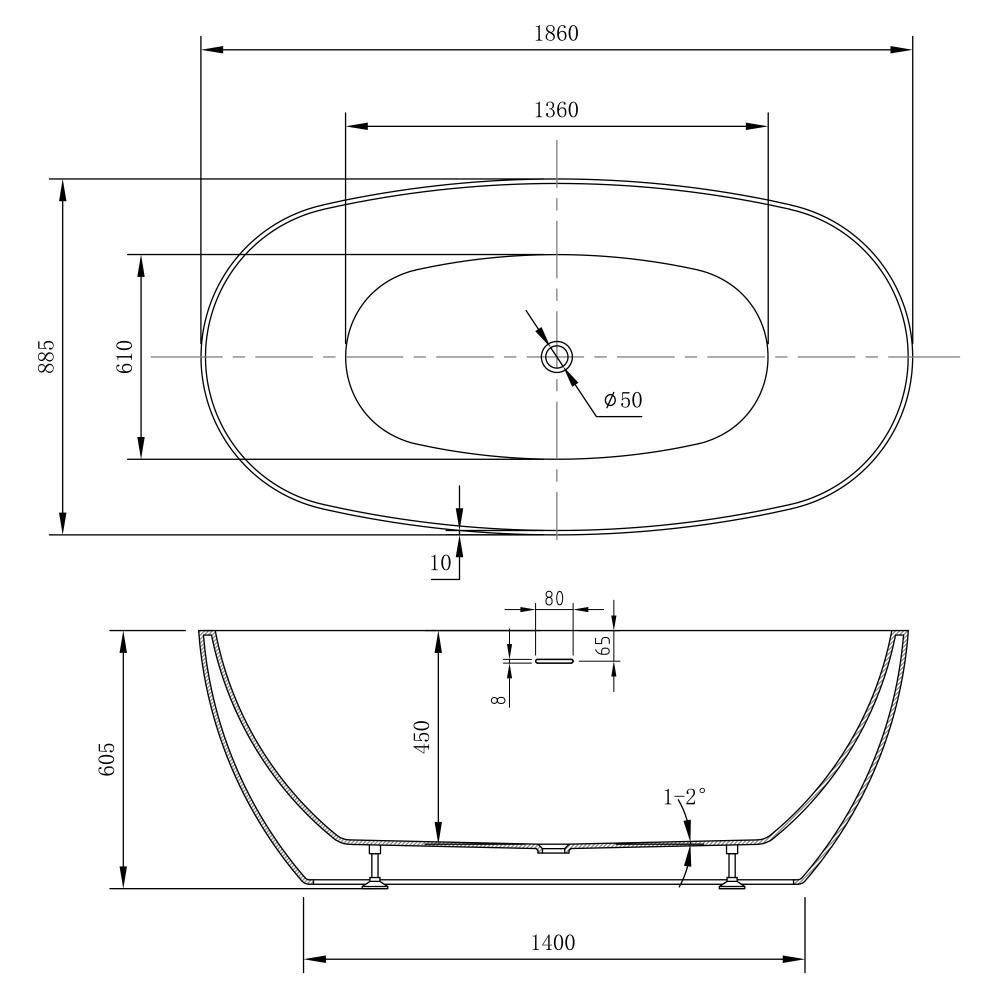 Ванна отдельностоящая Abber 186x88,5 см AB9504