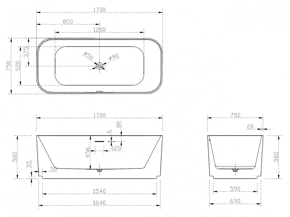 Ванна отдельностоящая Abber AB9363-1.7 170x75 см