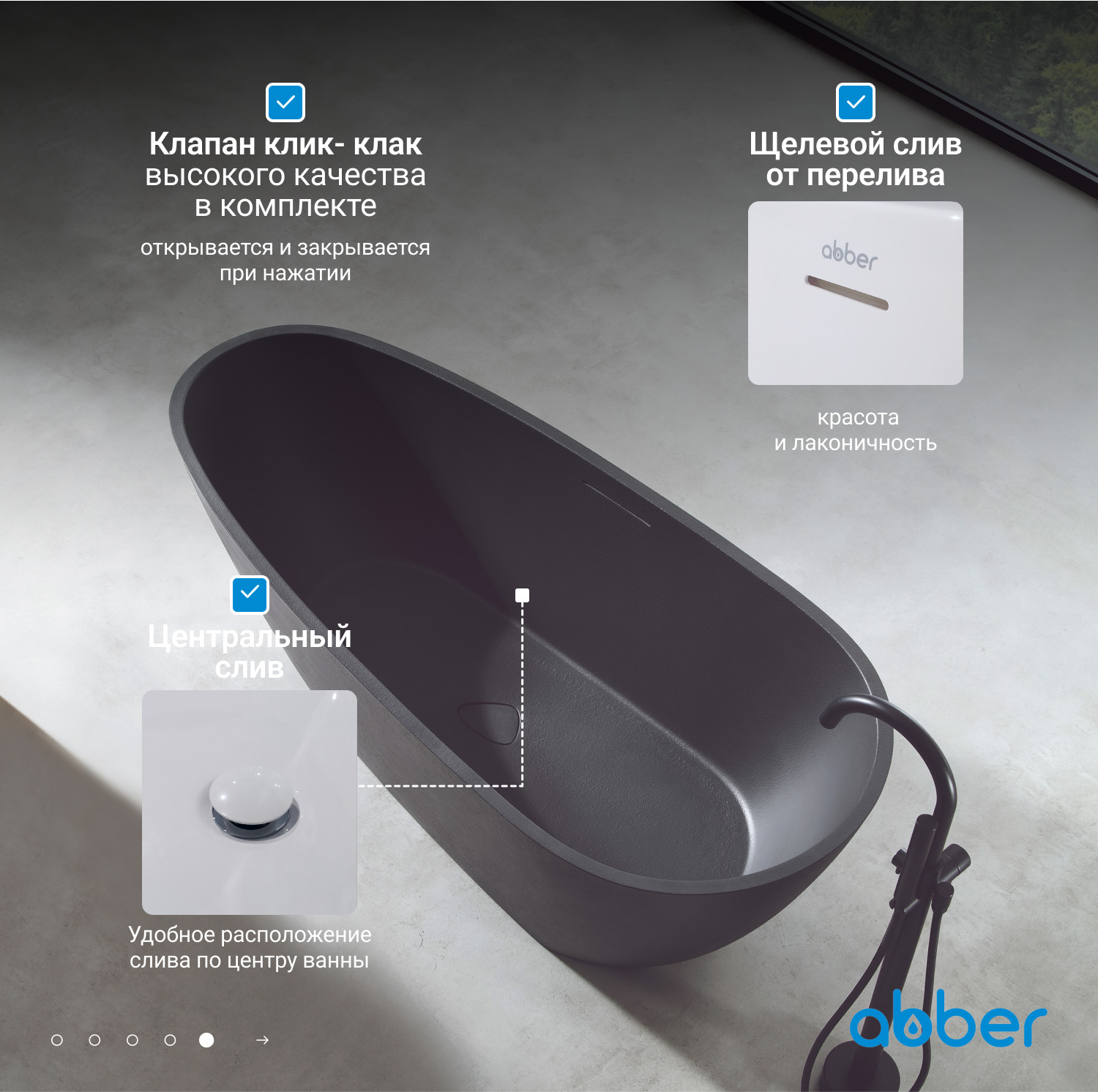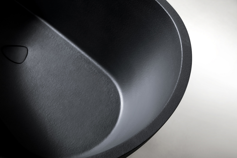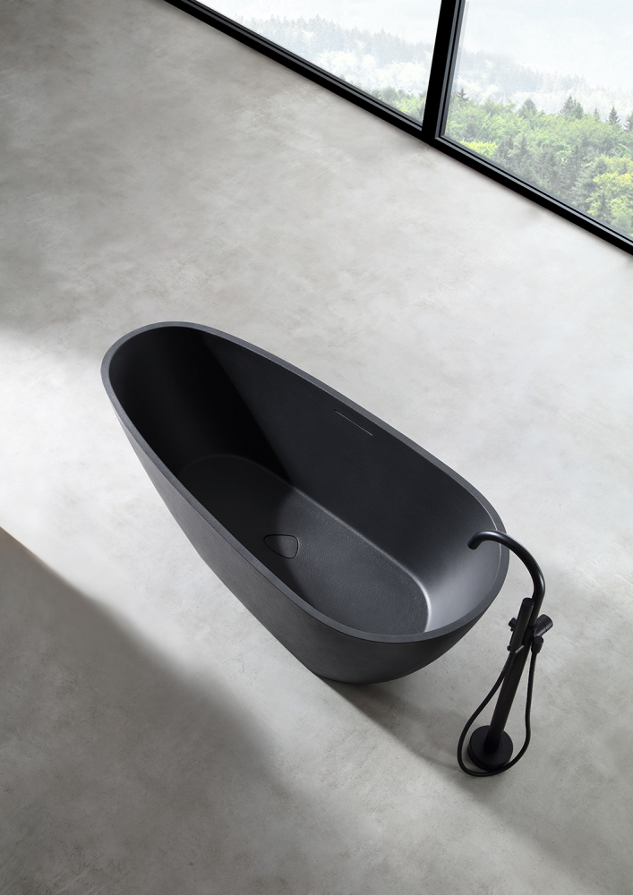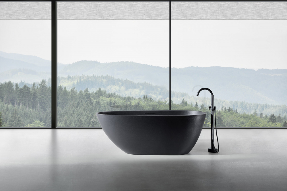 Ванна отдельностоящая Abber Dortmund 170x75 см AM9911B из искусственного камня, слив-перелив в комплекте, цвет - черный.