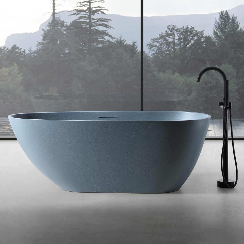 Ванна отдельностоящая Abber Dortmund 170x75 см AM9911G из искусственного камня, слив-перелив в комплекте, цвет - серый.