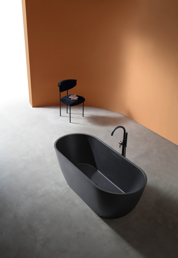 Ванна отдельностоящая Abber Frankfurt 170x75 см AM9941B из искусственного камня, слив-перелив в комплекте, цвет - черный.