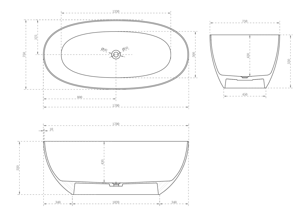 Ванна отдельностоящая Abber Karbon 170x75 см AK9001-1.7, чёрный