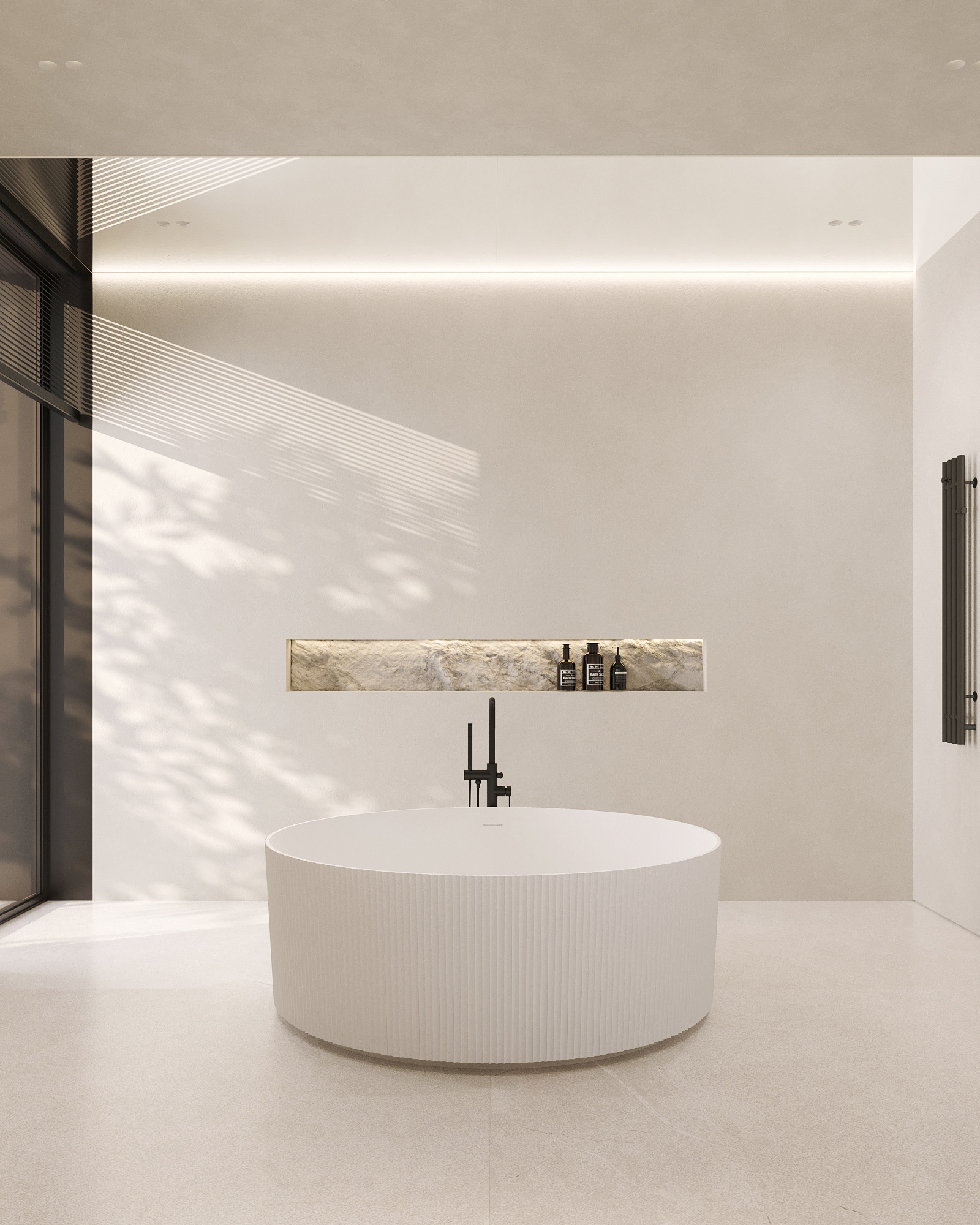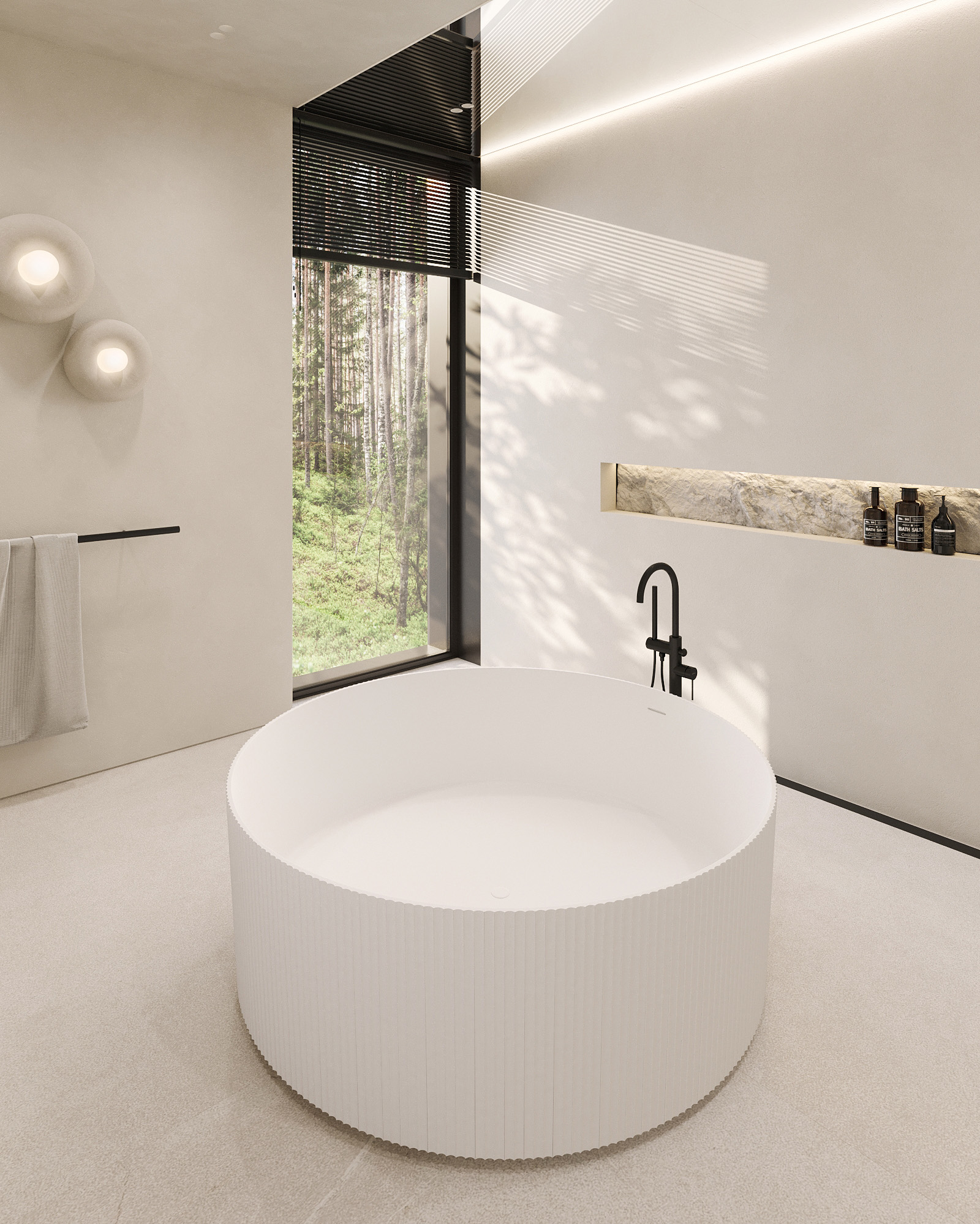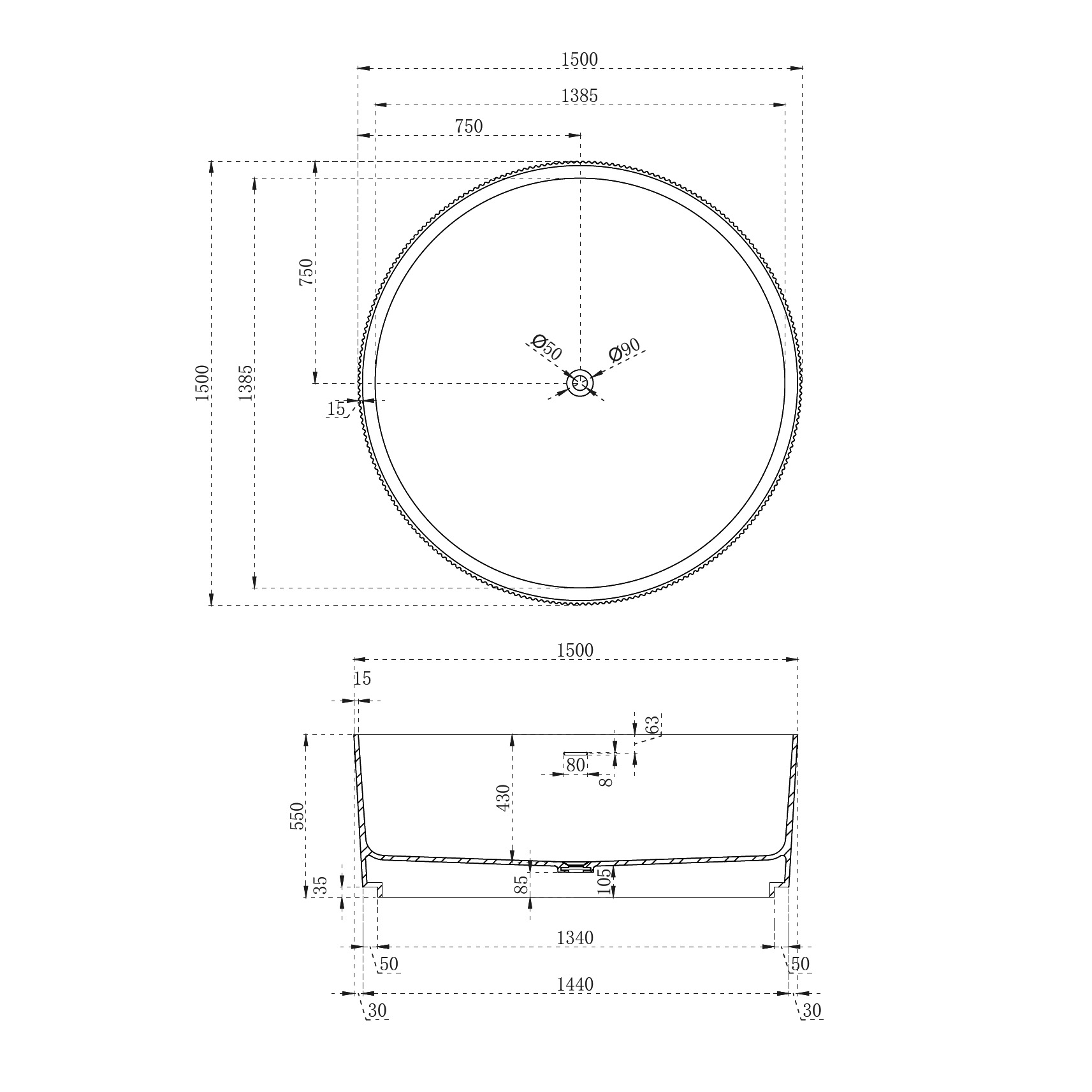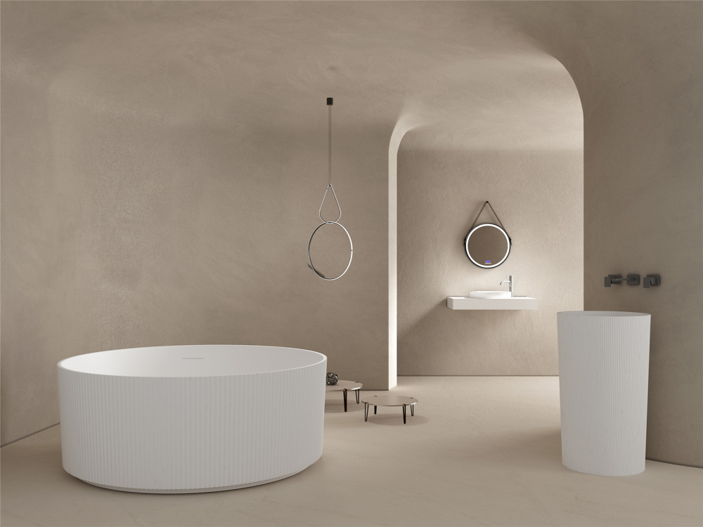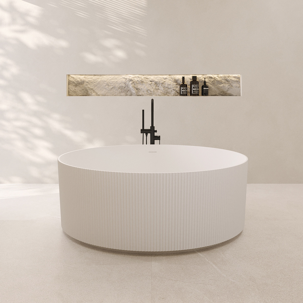 Ванна отдельностоящая Abber Stein 150x150 см AS9679 из искусственного камня, слив-перелив в комплекте, цвет - белый матовый.