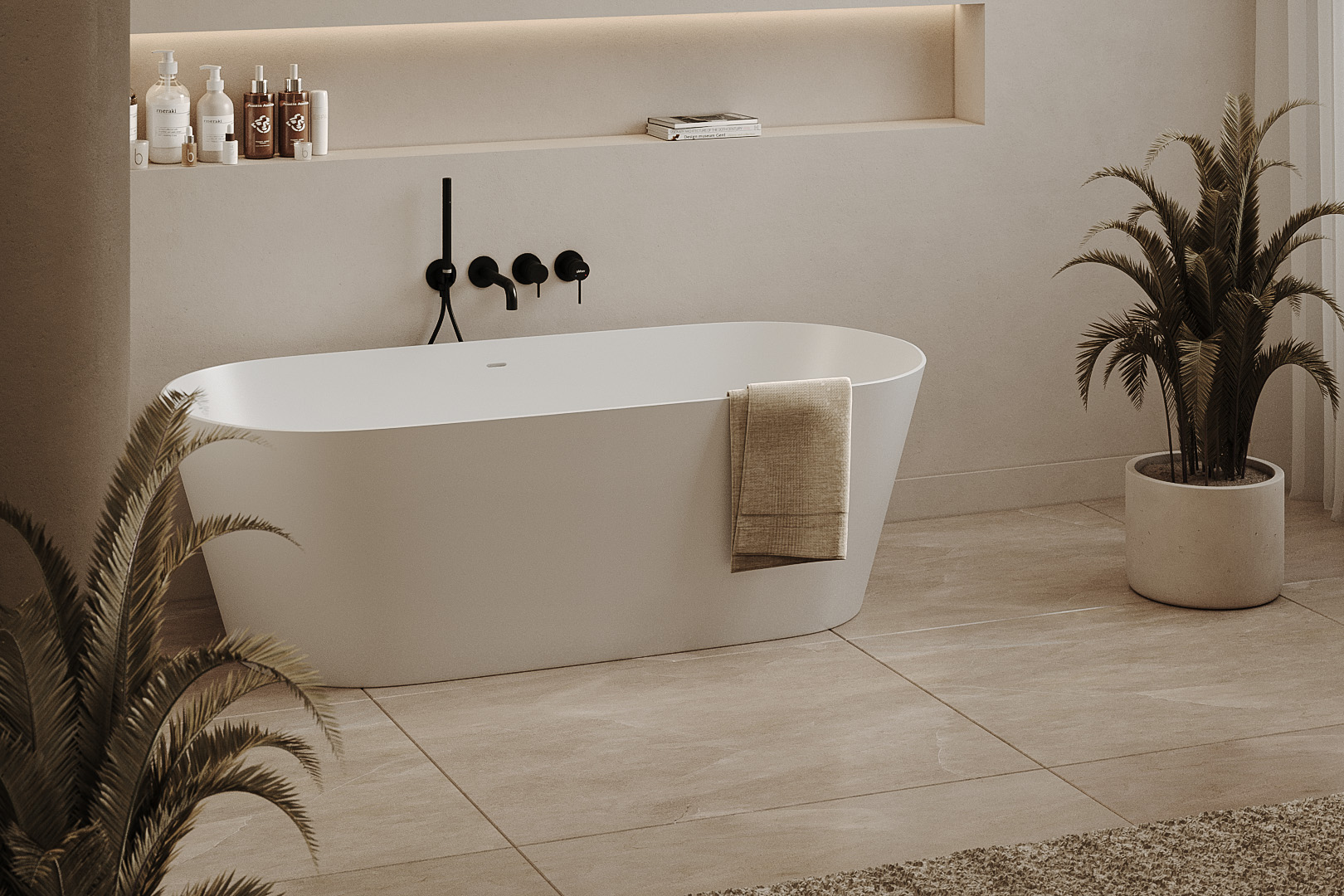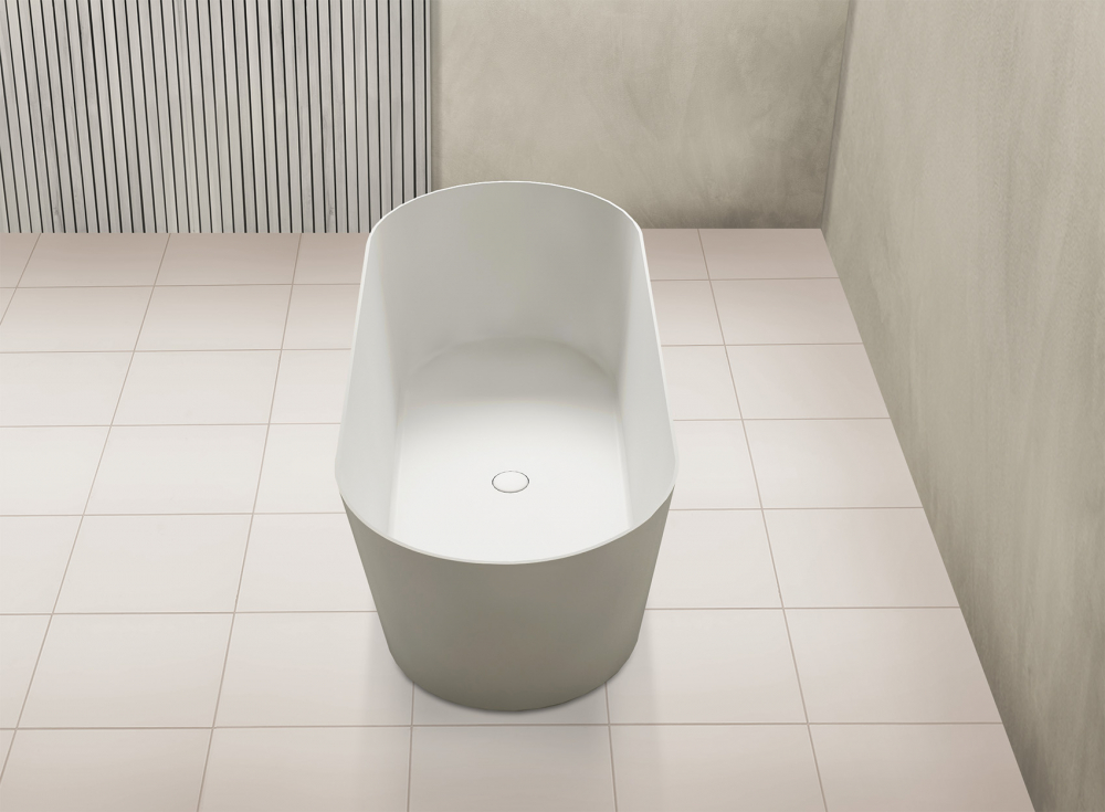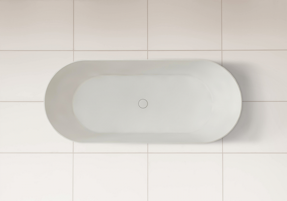 Ванна отдельностоящая Abber Stein 165x70 см AS9622 из искусственного камня, слив-перелив в комплекте, цвет - белый матовый.