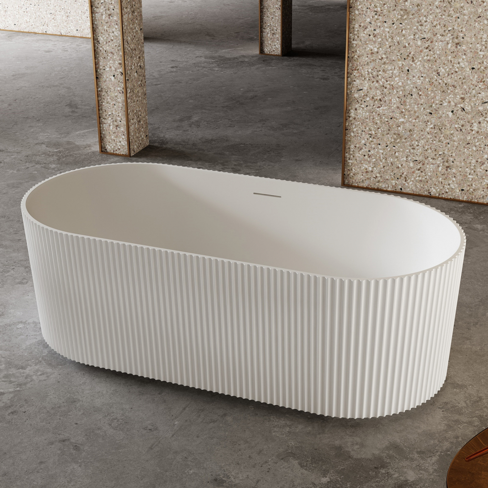 Ванна отдельностоящая Abber Stein 170x75 см AS9601 из искусственного камня, слив-перелив в комплекте, цвет - белый.