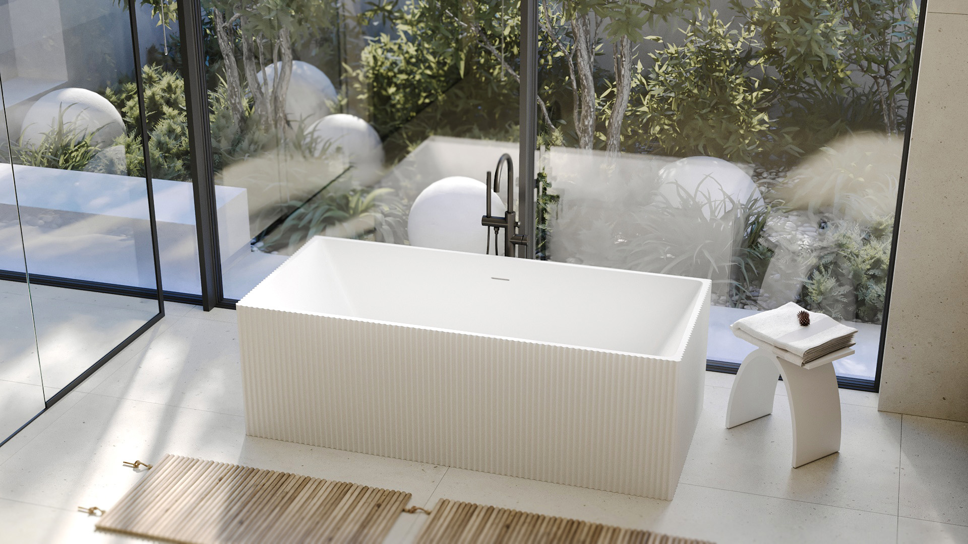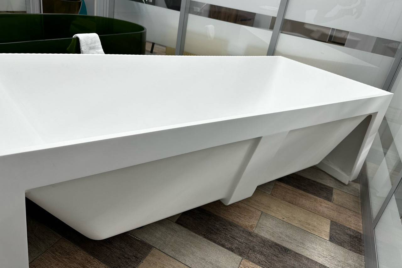 Ванна отдельностоящая Abber Stein 170x75 см AS9602 из искусственного камня, слив-перелив в комплекте, подсветка приобретается отдельно, цвет - белый.