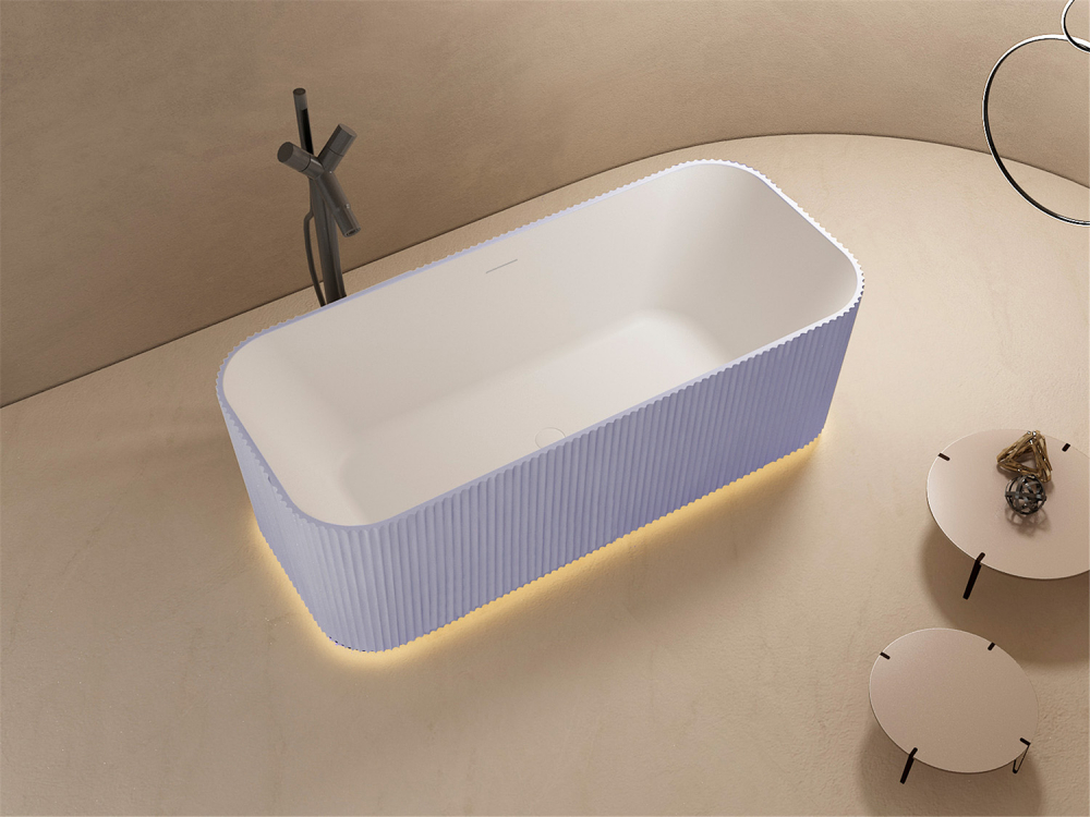 Ванна отдельностоящая Abber Stein 170x75 см AS9663Violett из искусственного камня, слив-перелив в комплекте, подсветка приобретается отдельно, цвет - фиолетовый.