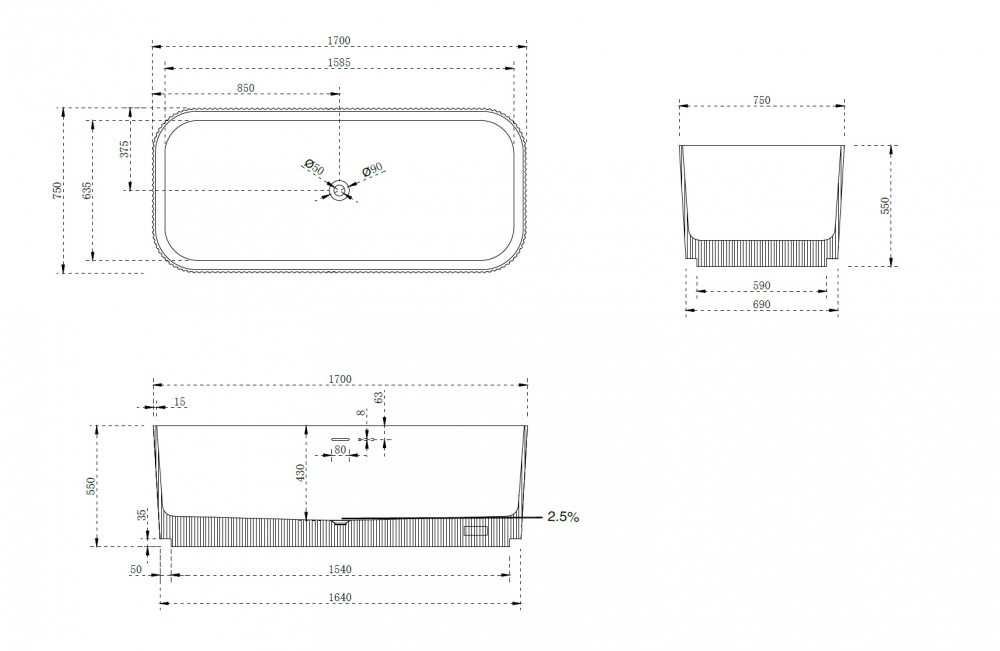 Ванна отдельностоящая Abber Stein 170x75 см AS9663Violett, фиолетовый