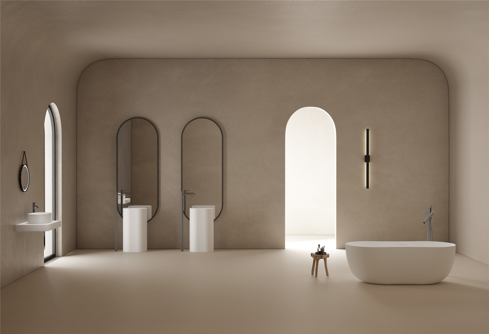 Ванна отдельностоящая Abber Stein 170x80 см AS9604 из искусственного камня, слив-перелив в комплекте, цвет - белый матовый.