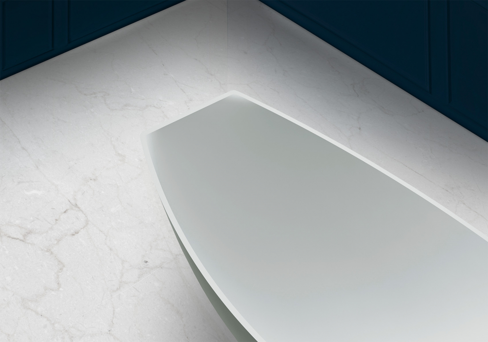 Ванна отдельностоящая Abber Stein 180x80 см AS9610 из искусственного камня, слив-перелив в комплекте, цвет - белый матовый.