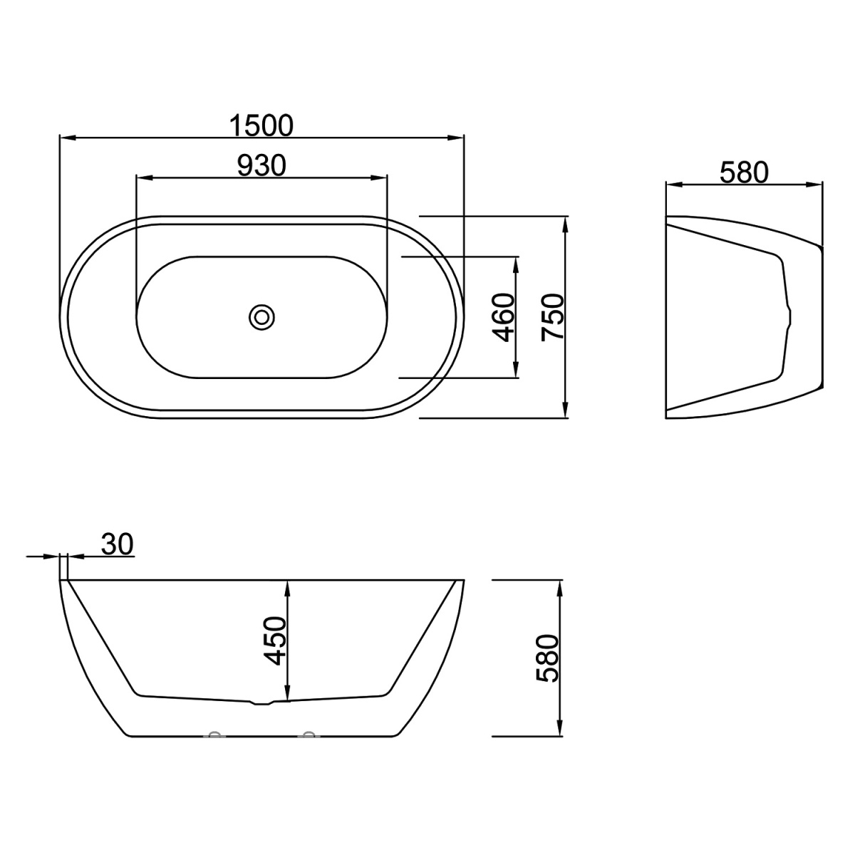 - Размеры ванны 1500x750x580 мм обеспечивают комфортное пространство для принятия водных процедур.