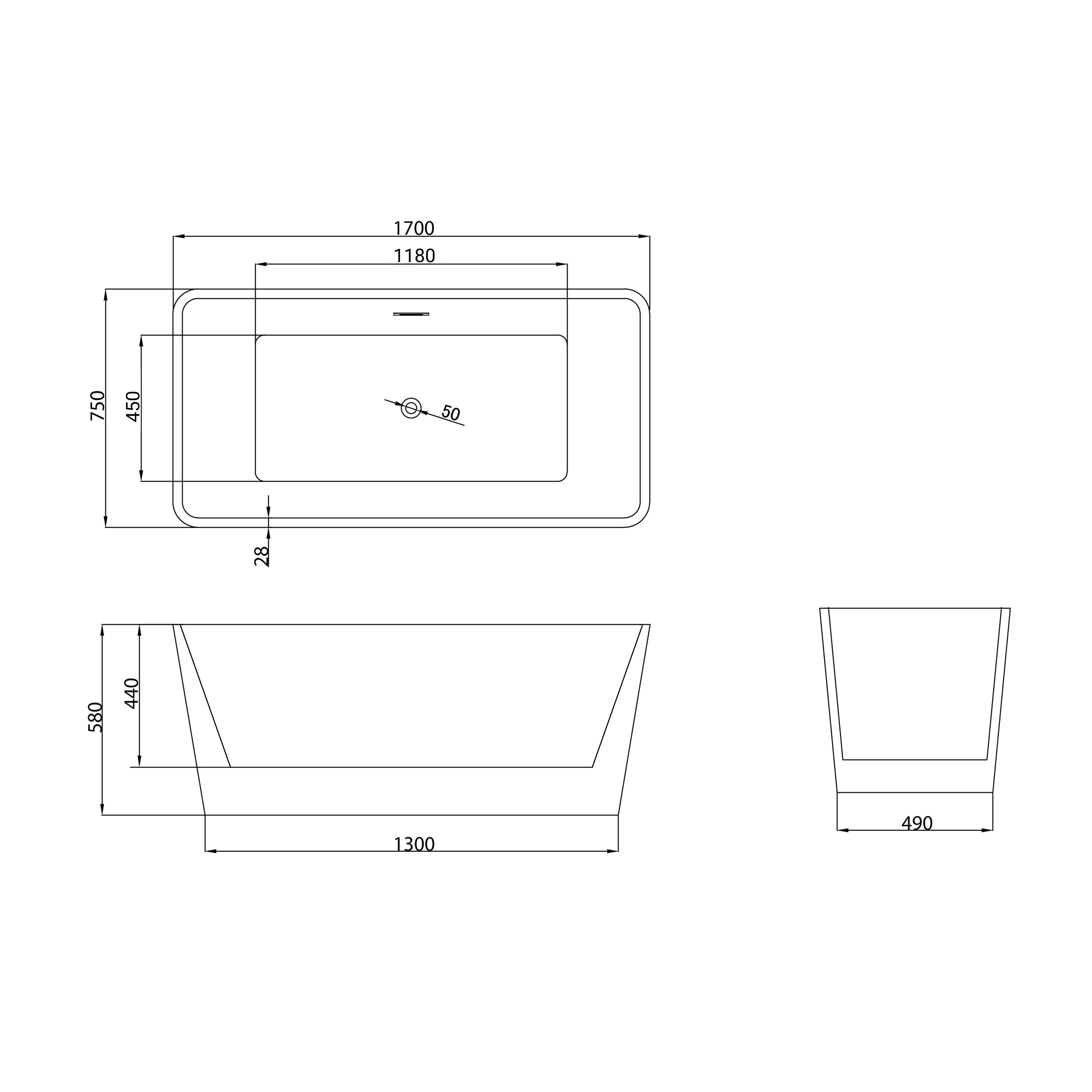 Ванна отдельностоящая Grossman Cristal GR-2022, размеры 1700x750x580 мм, сифон в комплекте, цвет белый.