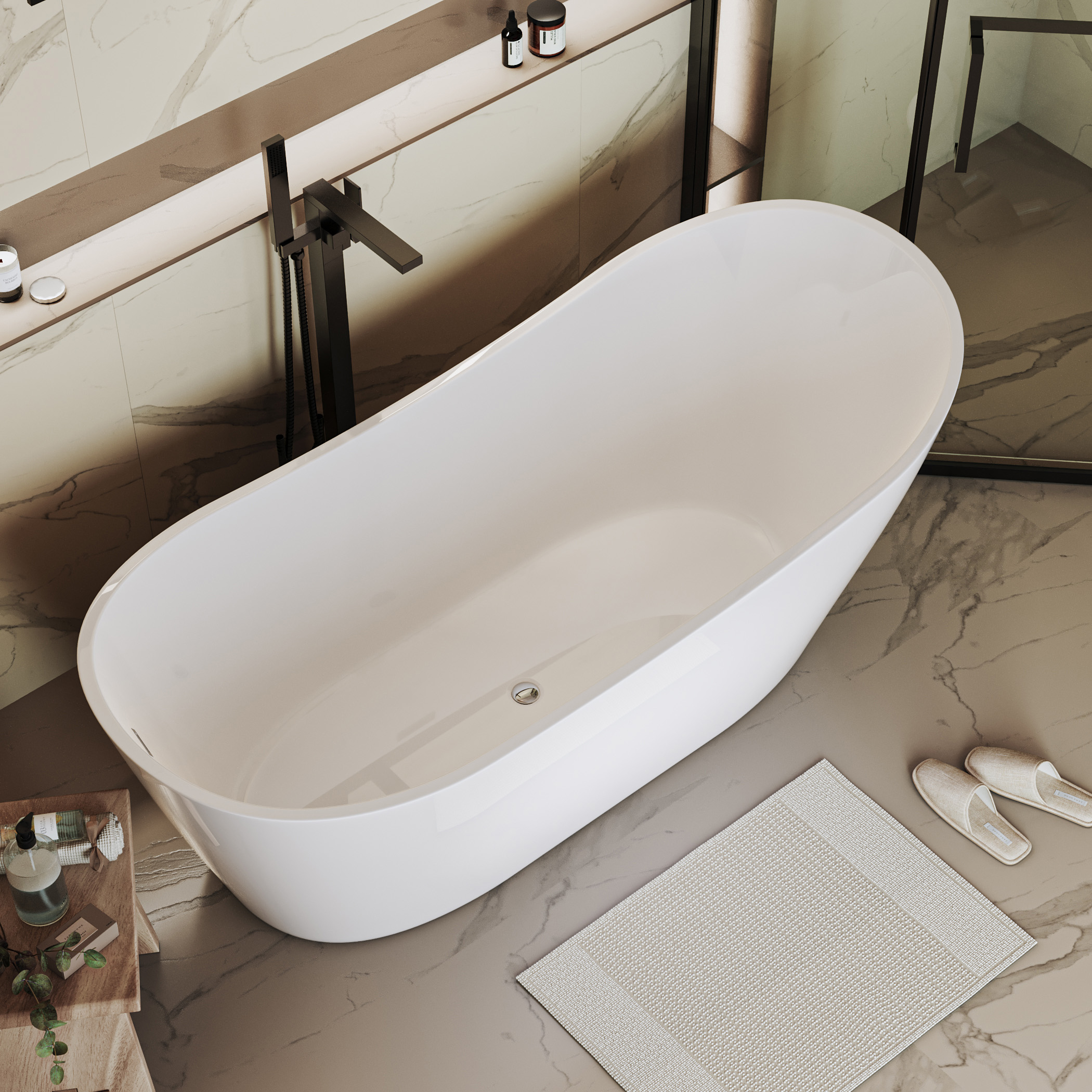 Ванна отдельностоящая Grossman Galaxy GR-2102M, размеры 1690x750x700 мм, сифон в комплекте, цвет белый матовый.