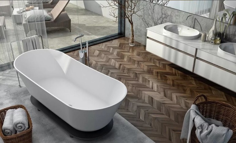 Ванна отдельностоящая Atys Duo FS 174x70 см с каркасом и сливом-переливом, материал ванны Kerrock.