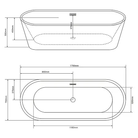 Ванна отдельностоящая Loranto CS-03mB-170, размер: 1700х750х580 мм, овальная акриловая ванна, в комплекте с сифоном и опорными ножками. Цвет чёрный.