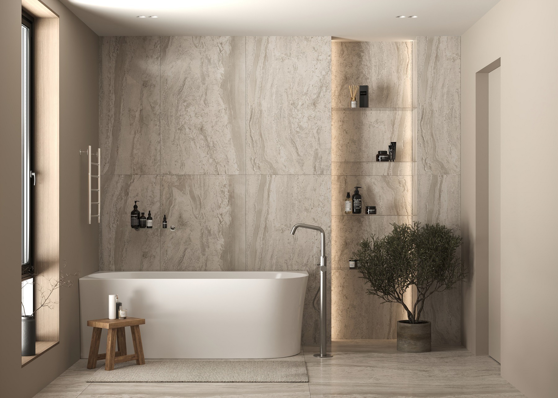 Ванна дополнена располагающейся под комфортным углом и плавно перетекающей в бортик спинкой, которая снимает нагрузку с мышц шеи и поясницы. Чаша со стенками высотой 60 см вмещает до 220 л воды, что подарит настоящее удовольствие от процедур, позволяя полностью погрузиться в воду. Глубина 45 см и высоко расположенный перелив с хромированной отделкой позволят набрать максимальное количество воды, не опасаясь, что она расплещется. Широкий бортик вдоль стены подойдет для размещения гигиенических и уходовых средств. Отверстие для слива встроено точно по центру. Модель отличается устойчивостью, поскольку устанавливается на пол без использования ножек. Ванна не требует дополнения фронтовой и/или боковой панелью. В комплект включен встроенный слив-перелив.