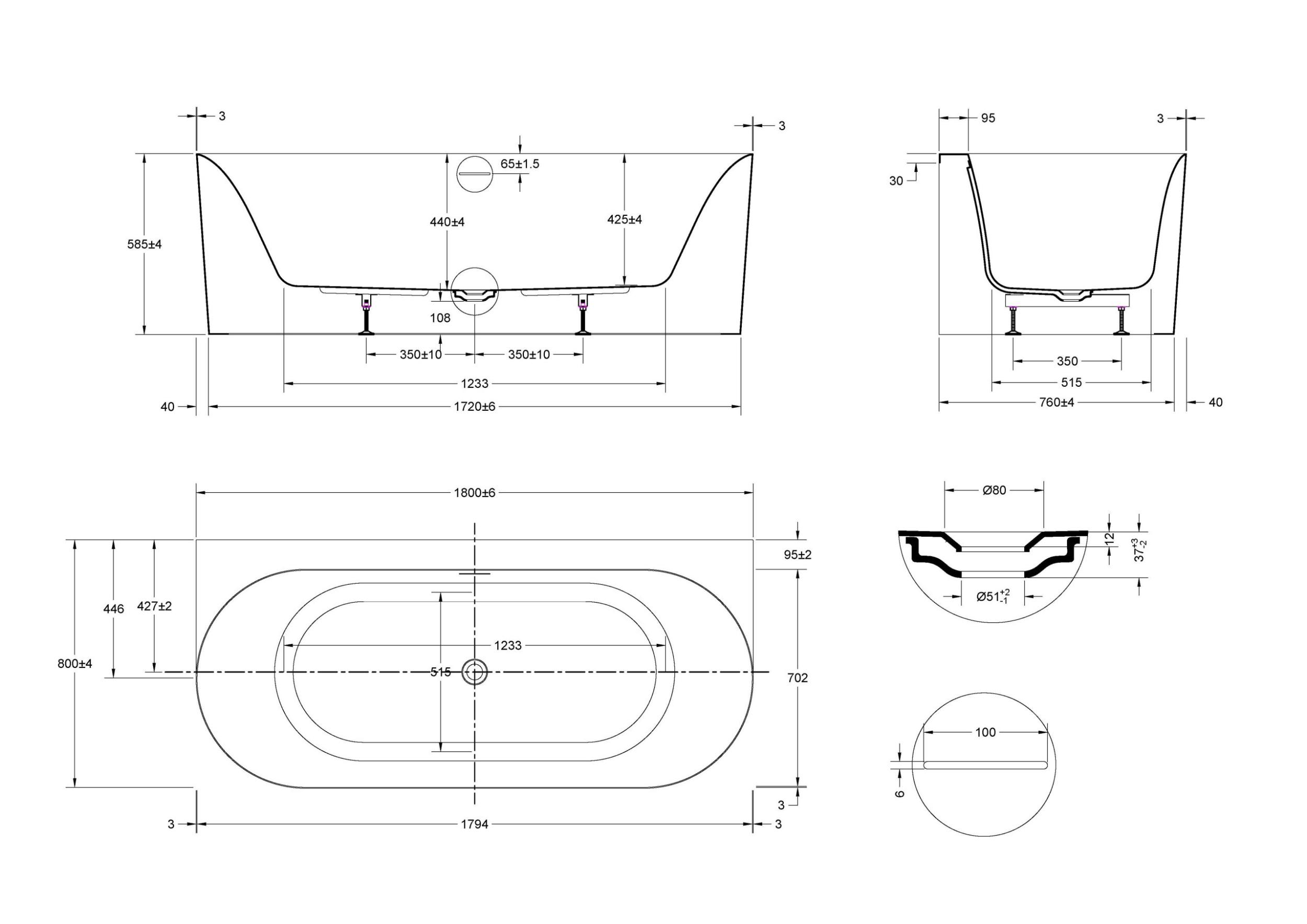 Описание ванна Vincea VBT-703-1800