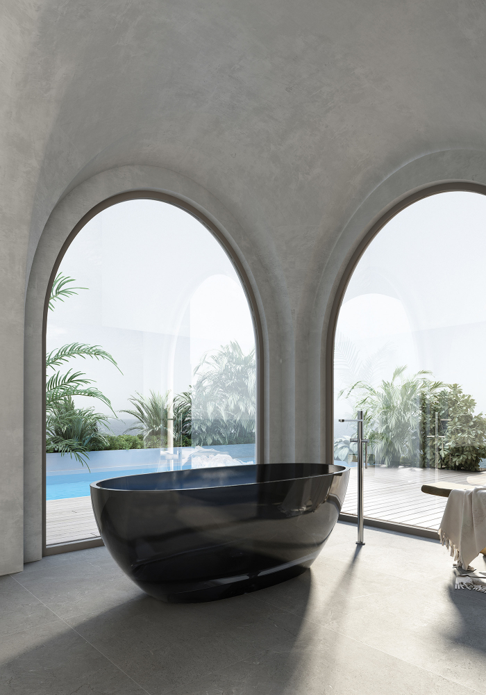 Ванна прозрачная Abber Kristall 165x78 см AT9701Onyx из полиэфирной смолы, донный клапан в комплекте, цвет - черный.
