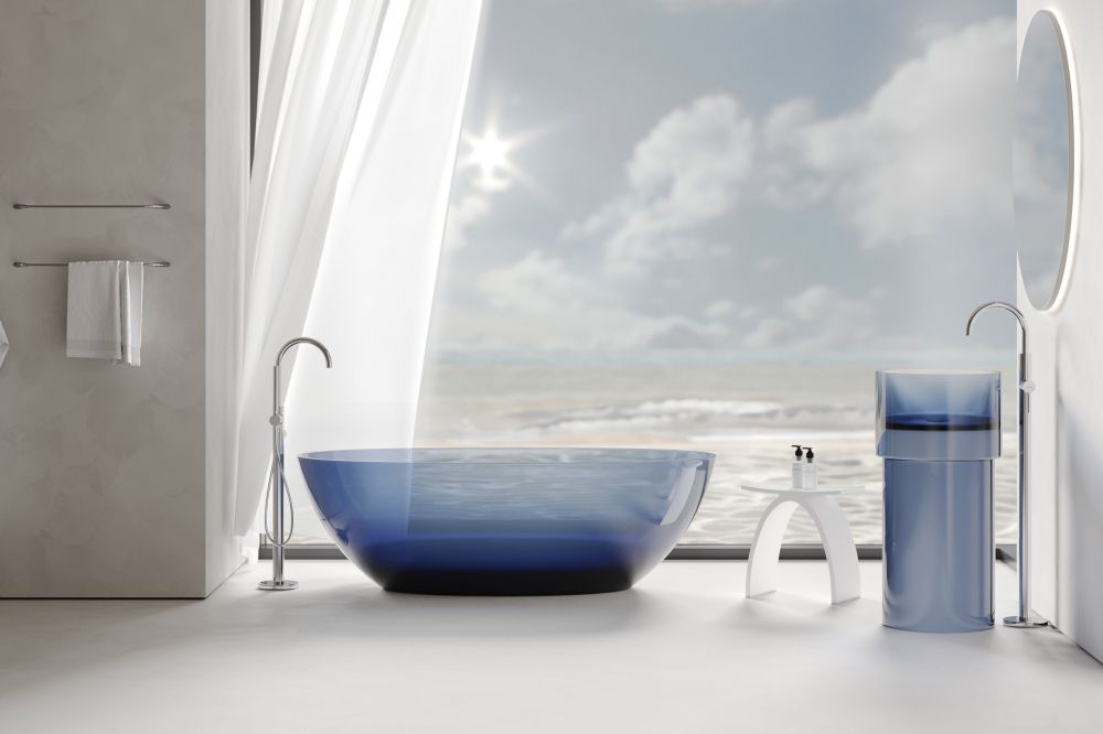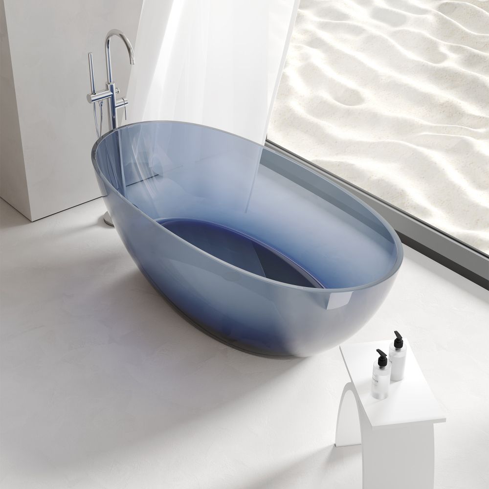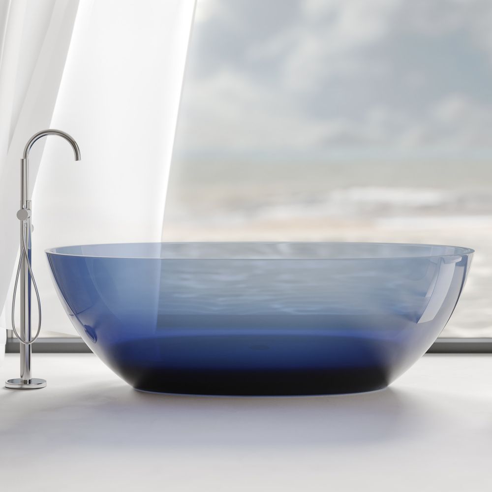 Ванна прозрачная Abber Kristall AT9701Saphir из полиэфирной смолы, размер 165x78 см, донный клапан и сифон в комплекте, цвет синий.