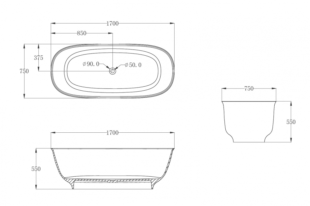 Ванна прозрачная Abber Kristall 170x75 см AT9707Emerald, зеленый