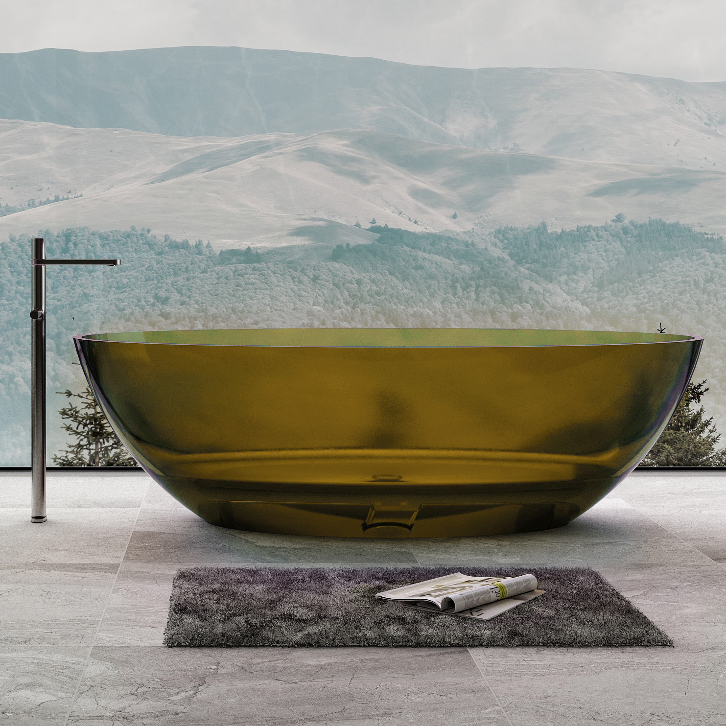 Ванна прозрачная Abber Kristall 180x85 см AT9702Vesuvian из полиэфирной смолы, донный клапан в комплекте, цвет - оливковый.